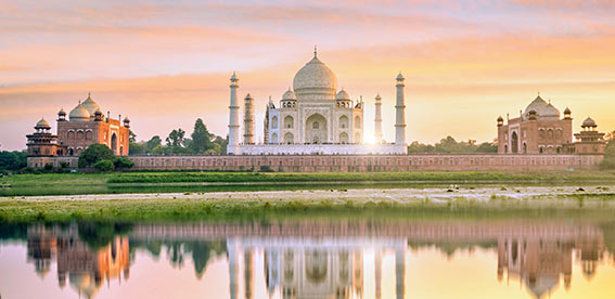 Taj Mahal: - The Taj Mahal is an ivory-white marble mausoleum on the south bank of the Yamuna river in the Indian city of Agra. It was commissioned in 1632 by the Mughal emperor.